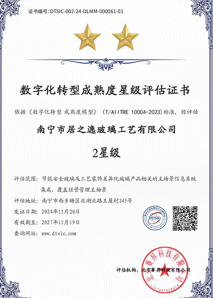 Производственная площадь компании составляет более 26 000 квадратных метров, годовой объем производства превышает 100 миллионов юаней. Компания является высокотехнологичным предприятием города Наньнин, сферой деятельности охватывает Наньнин и прилегающие районы. Совокупный объем переработанного стекла превысил 10 миллионов квадратных метров, что делает ее ведущим предприятием в отрасли глубокой переработки стекла в Гуанси.